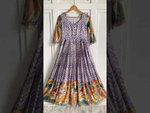 Chevron Print Anarkali Gown, available in soft pink and lavender shades. Crafted from lightweight, flowy fabric, this gown features a graceful zig-zag chevron pattern throughout the body, creating a modern yet timeless appeal.