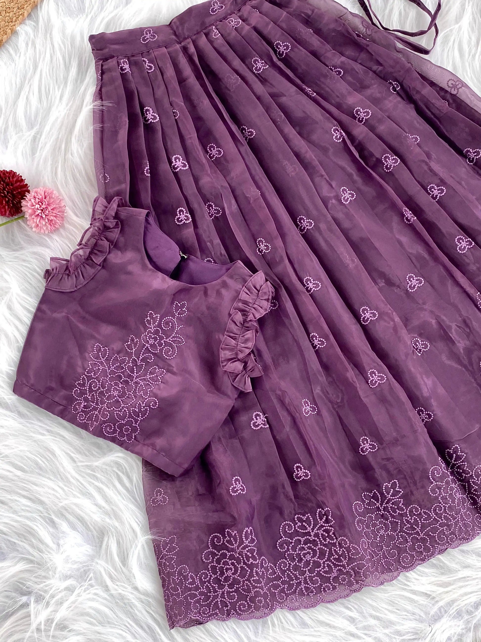 Crush Organza Embroidered Lehenga Choli Set (1 Month–16 Years) - Purple