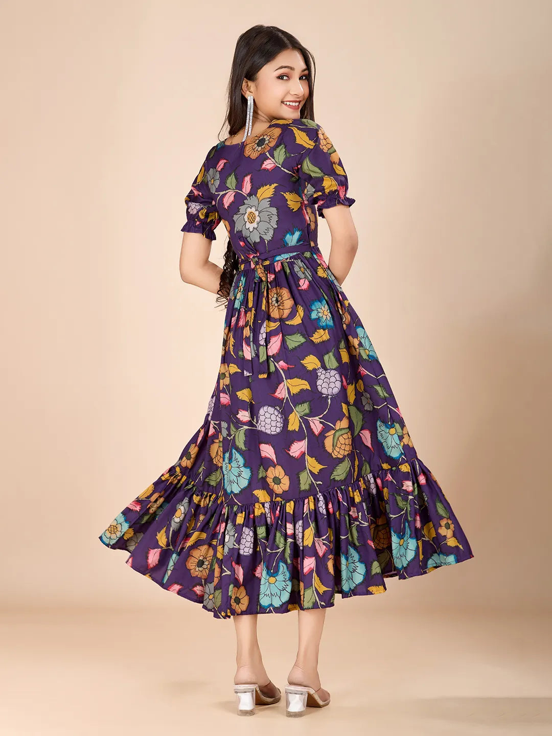 Step into effortless elegance with this beautifully designed Women Floral Printed Midi Dress in a rich purple tone. Featuring vibrant multicolor floral prints, this dress brings a fresh and cheerful charm that’s perfect for both casual and semi-formal occasions.