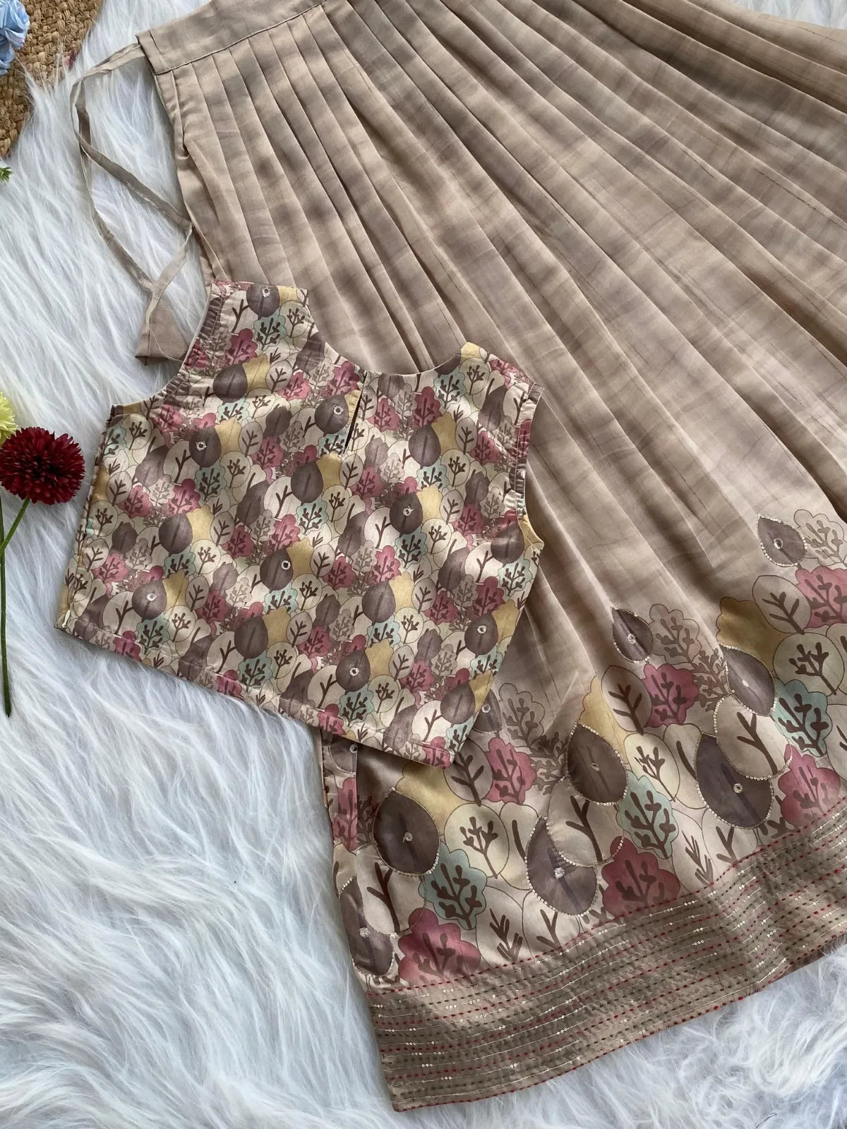 Bring home timeless ethnic charm with this beautiful printed skirt–top set for girls, thoughtfully designed with delicate Kantha embroidery that adds a touch of traditional elegance.