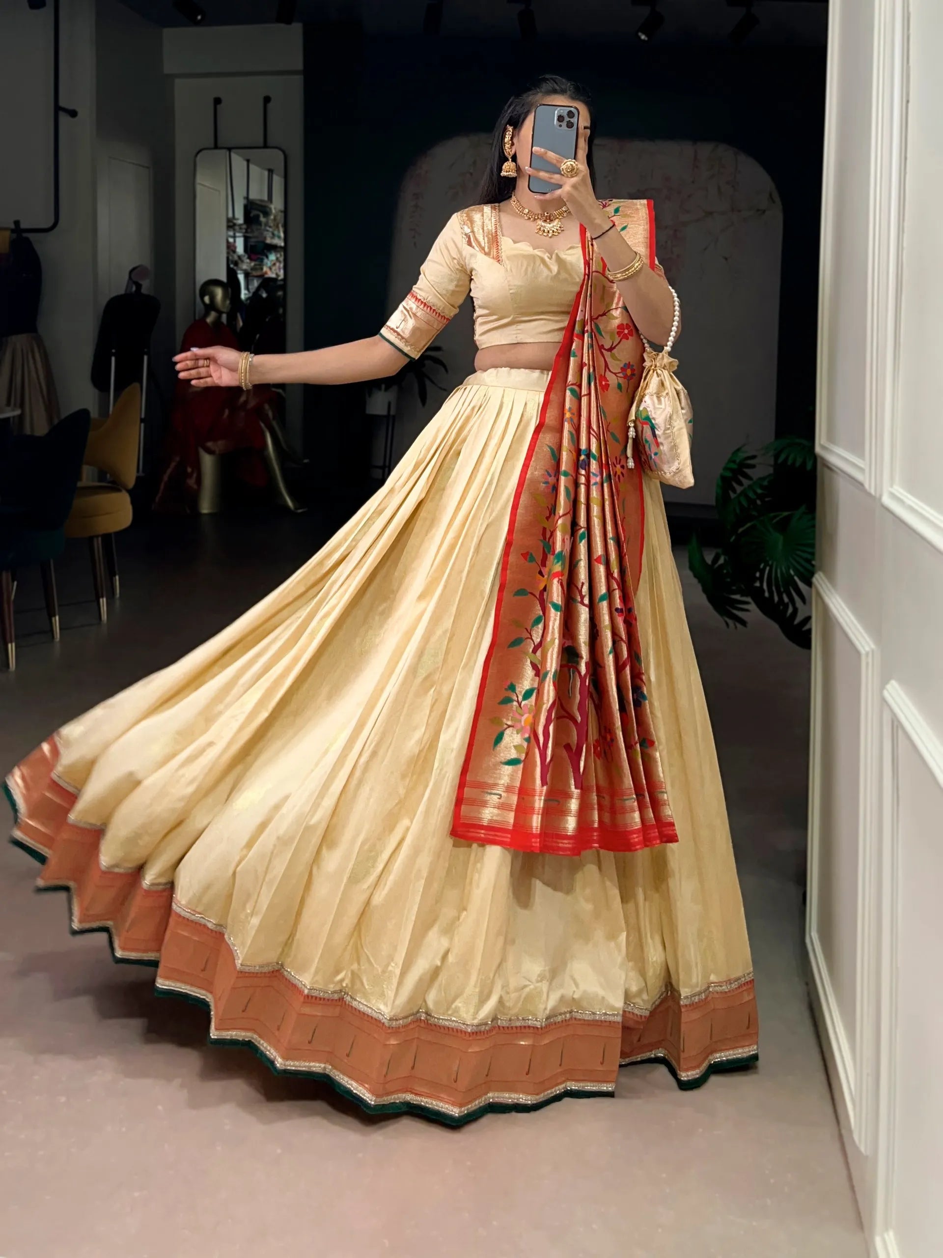 Traditional Maharashtrian Paithani Lehenga Choli for Wedding - Cream